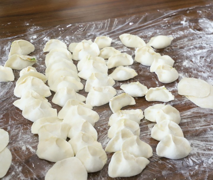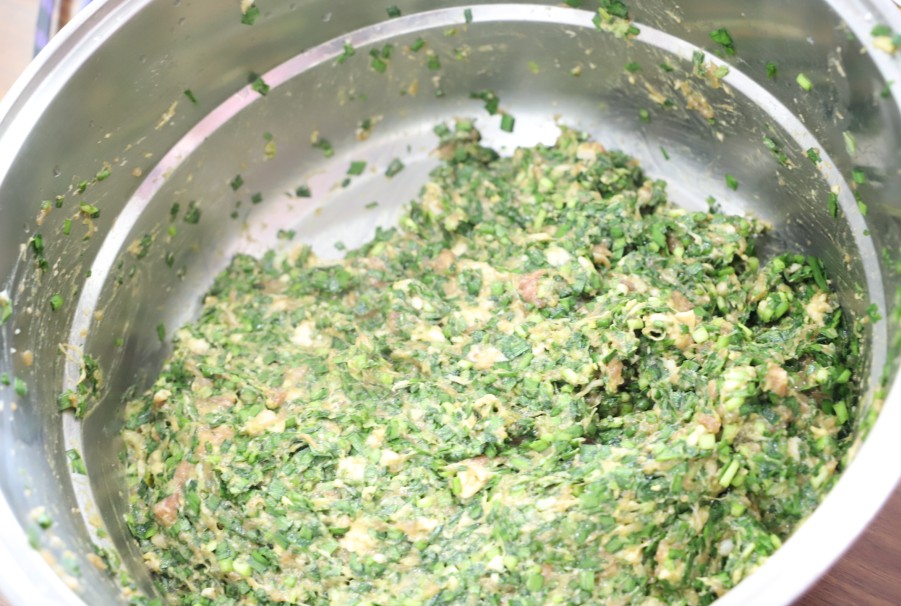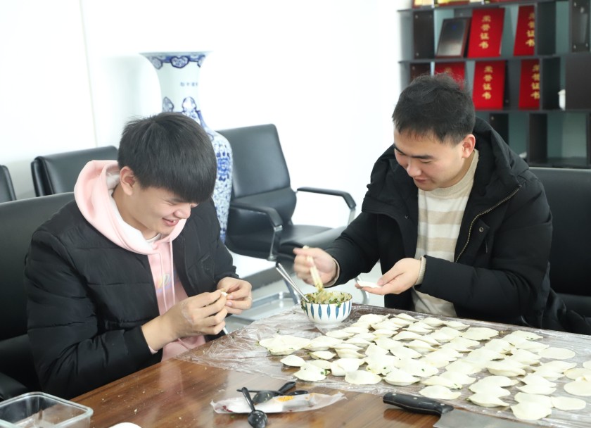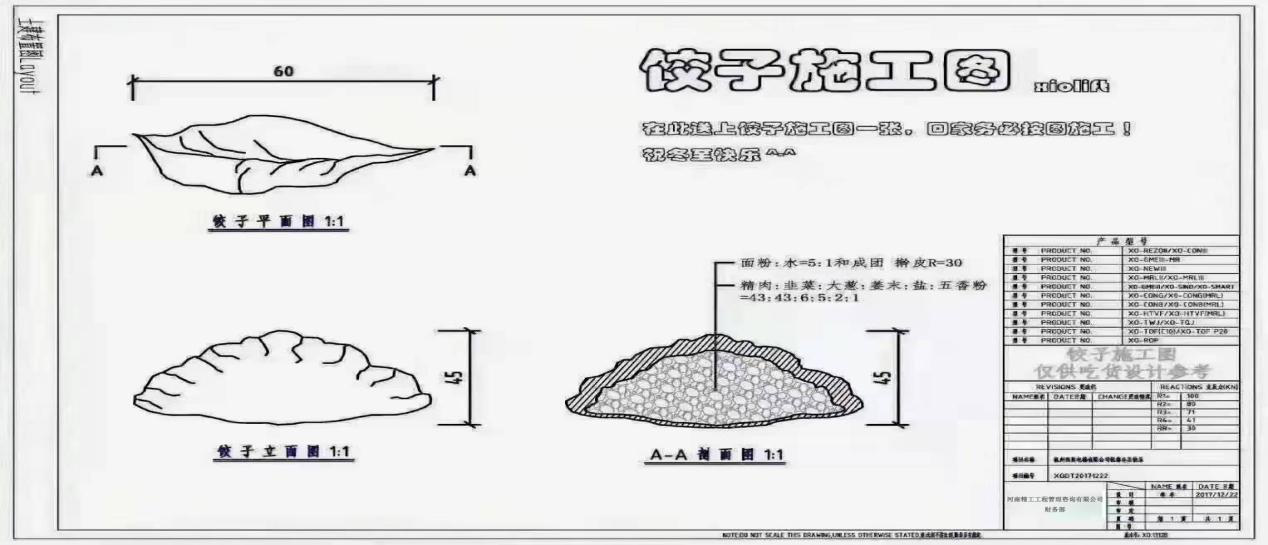 本次“餃子”制作依舊采用傳統的施工工藝:“剁”-“調”-“拌”-“和”-“盤”-“搟”-“包”。