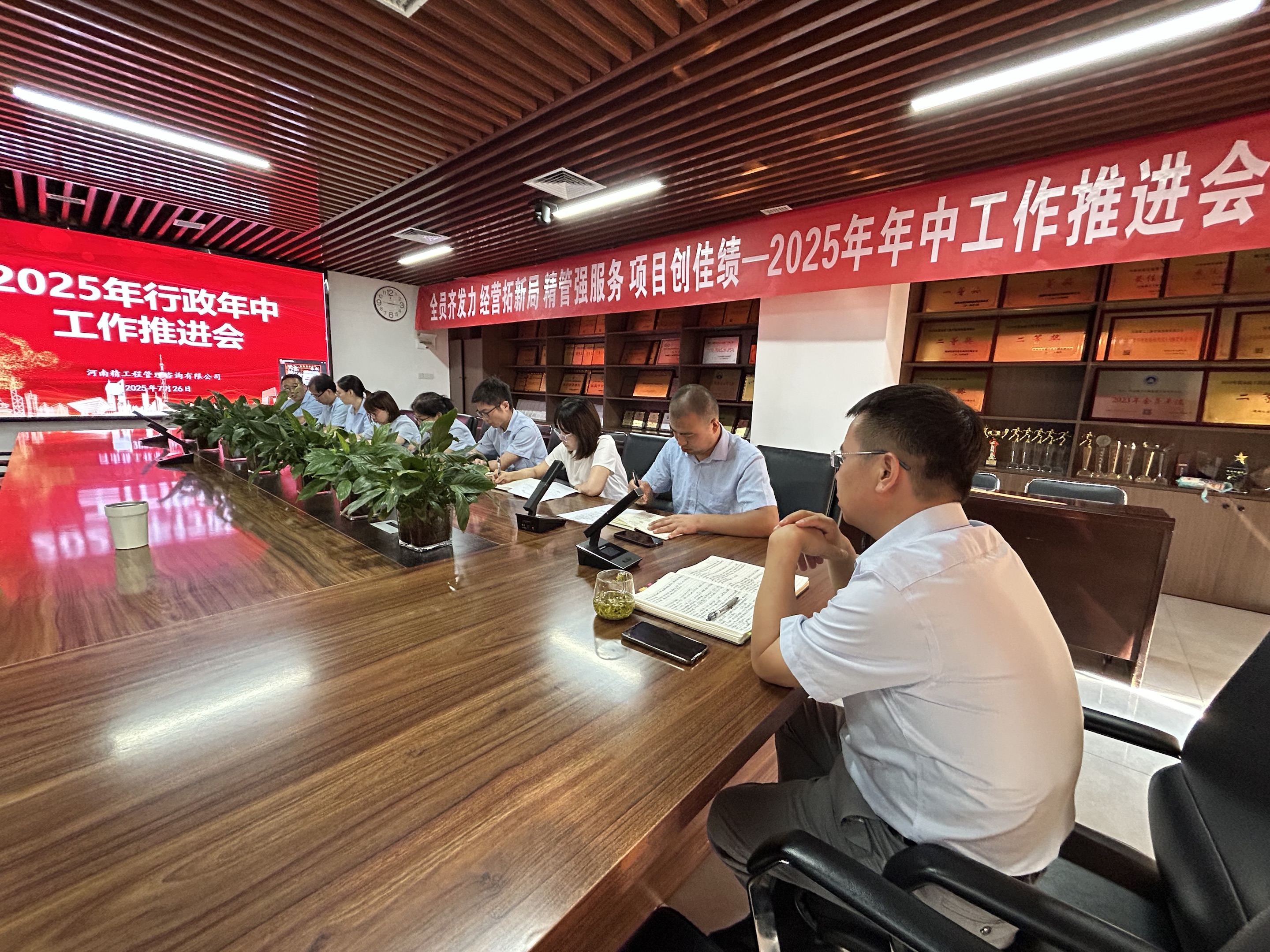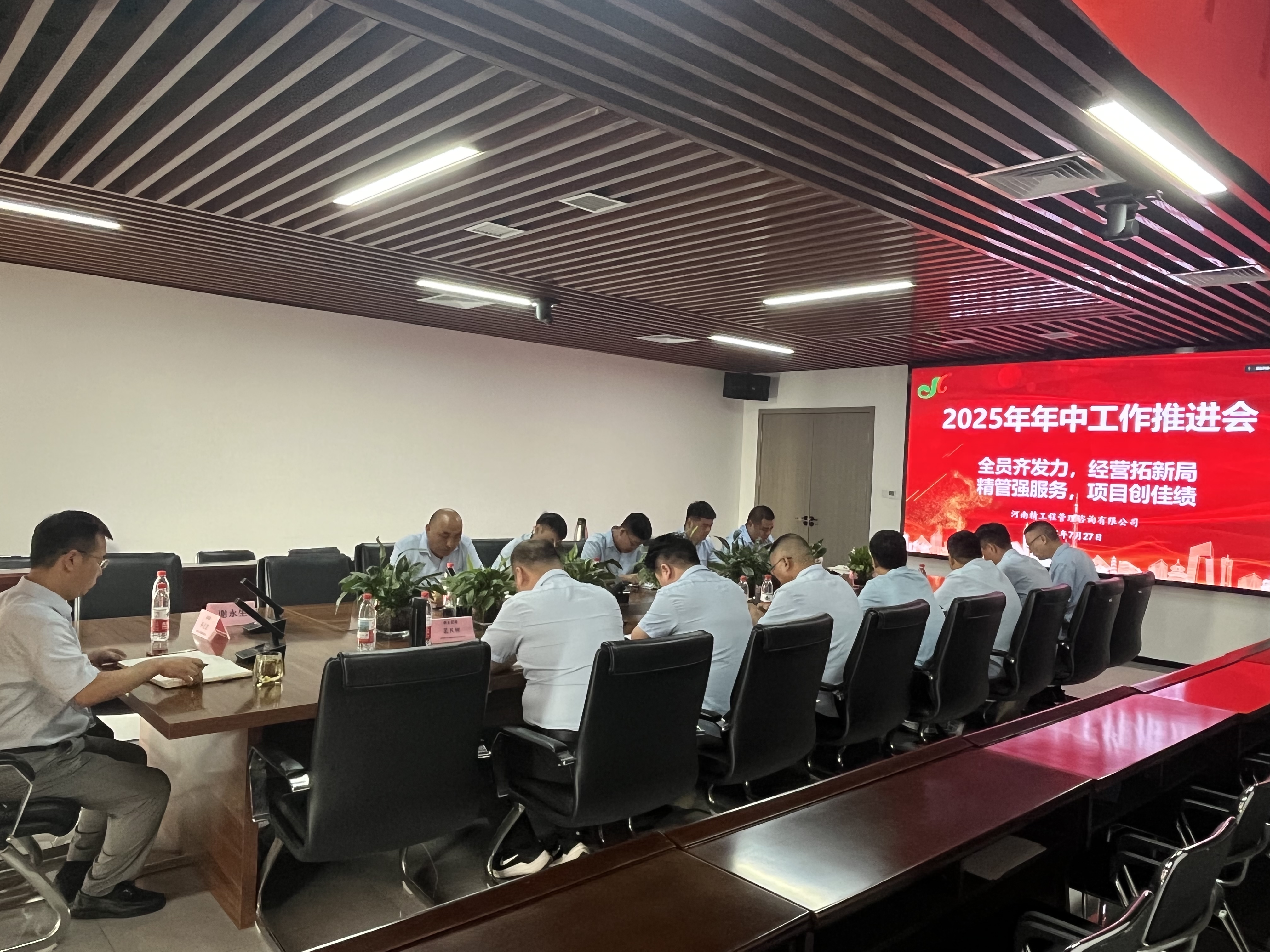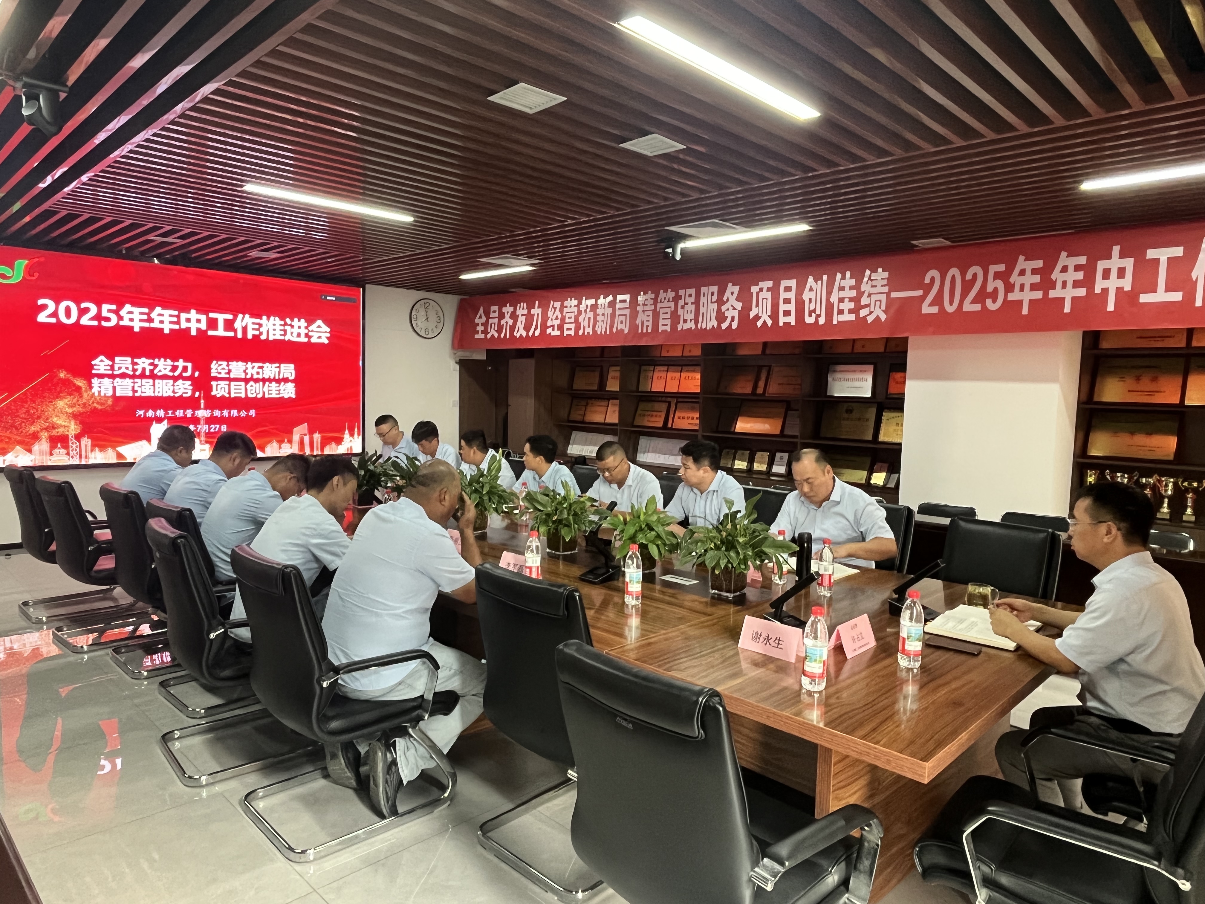 為全面總結(jié)2025年上半年工作成效,精準(zhǔn)剖析問題,部署下半年重點(diǎn)任務(wù),奮力實(shí)現(xiàn)年度目標(biāo),河南精工工程管理咨詢有限公司于2025年7月26日至27日在總部會議室隆重召開年中工作推進(jìn)會。會議采用主會場與分會場相結(jié)合的形式,公司總經(jīng)理許占立、副總經(jīng)理孟凡彬、工程部經(jīng)理李鑫、工程部副經(jīng)理汪強(qiáng)、行政各部門負(fù)責(zé)人、項(xiàng)目總監(jiān)等50余人齊聚共謀發(fā)展新篇。