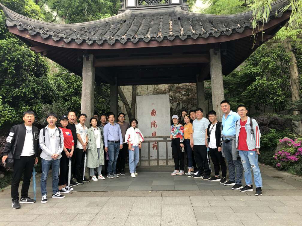 公司領(lǐng)導(dǎo)及優(yōu)秀員工在曲院風(fēng)荷亭前合影