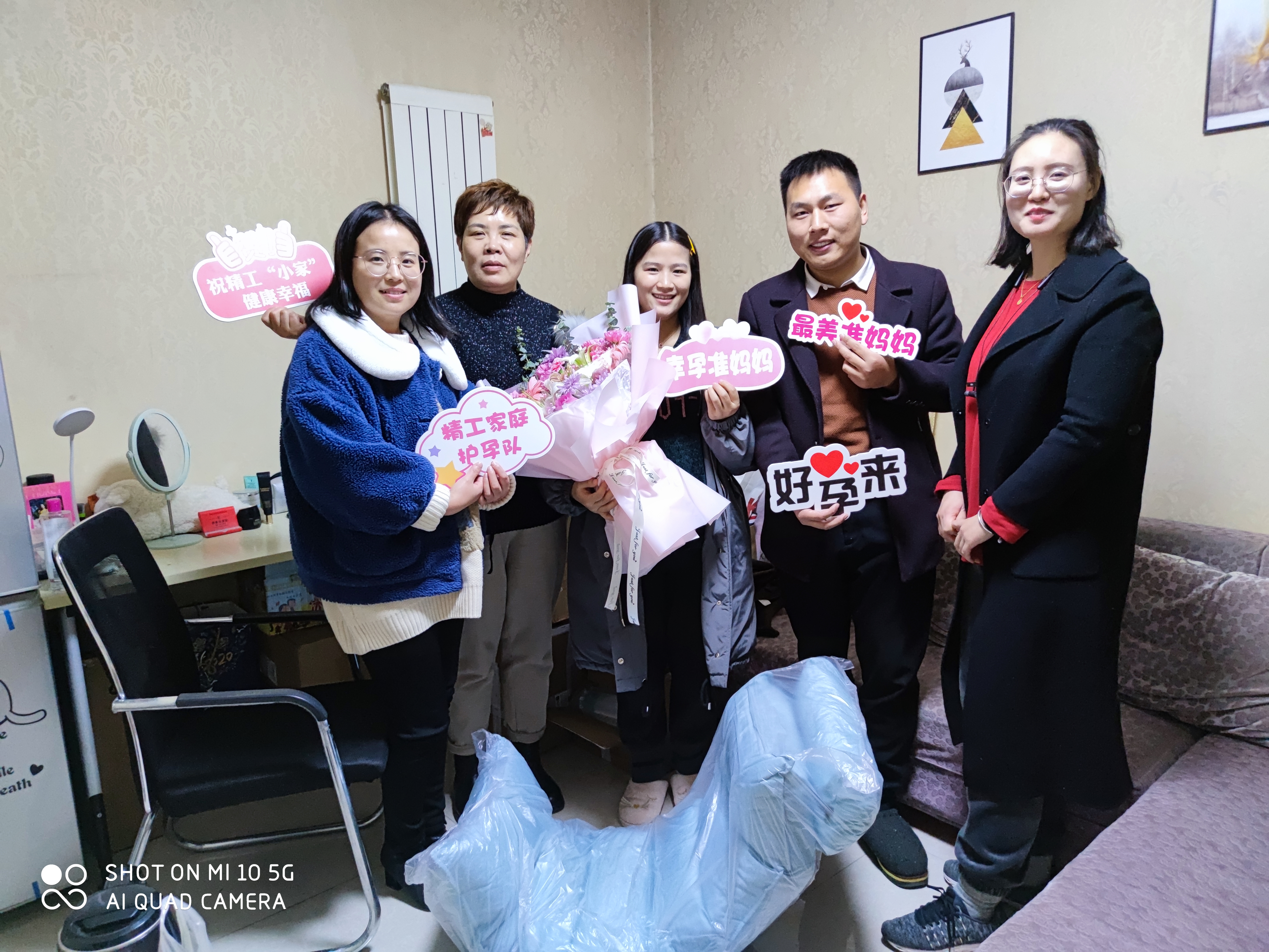 2020年11月28日,由河南精工工程管理咨詢有限公司工會主席張瑋、人力資源經(jīng)理劉煥笑、綜合部經(jīng)理石素敏、邱瑞納一行組成“精工家庭護(hù)孕隊”對精工“小家”中的幸“孕”準(zhǔn)媽媽入戶慰問,親切交流噓寒問暖,了解她們的工作、生活情況,關(guān)心目前的身體狀況。其中,工會主席張瑋還以自身孕期經(jīng)驗及孕期知識為她們講解了在孕期的注意事項和孕產(chǎn)、胎教、育兒等方面相關(guān)知識。