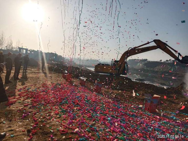 彩炮聲中,挖掘機(jī)隆隆啟動,機(jī)械挖掘斗在旭陽的照射下深入地下破土而出,至此標(biāo)志著桐柏縣基礎(chǔ)設(shè)施道路橋梁工程安瀾路跨越淮河橋梁工程正式開工。